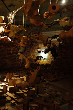 "At first, we planned to place just a few cardboard angels above a city, but the city grew—spreading from one wall to the floor, taking over the entire room. The angels refused to stay confined, so we had to break through the walls and give them space to move. By the way, I want to thank everyone who helped me collect cardboard, assemble, and curate this work.